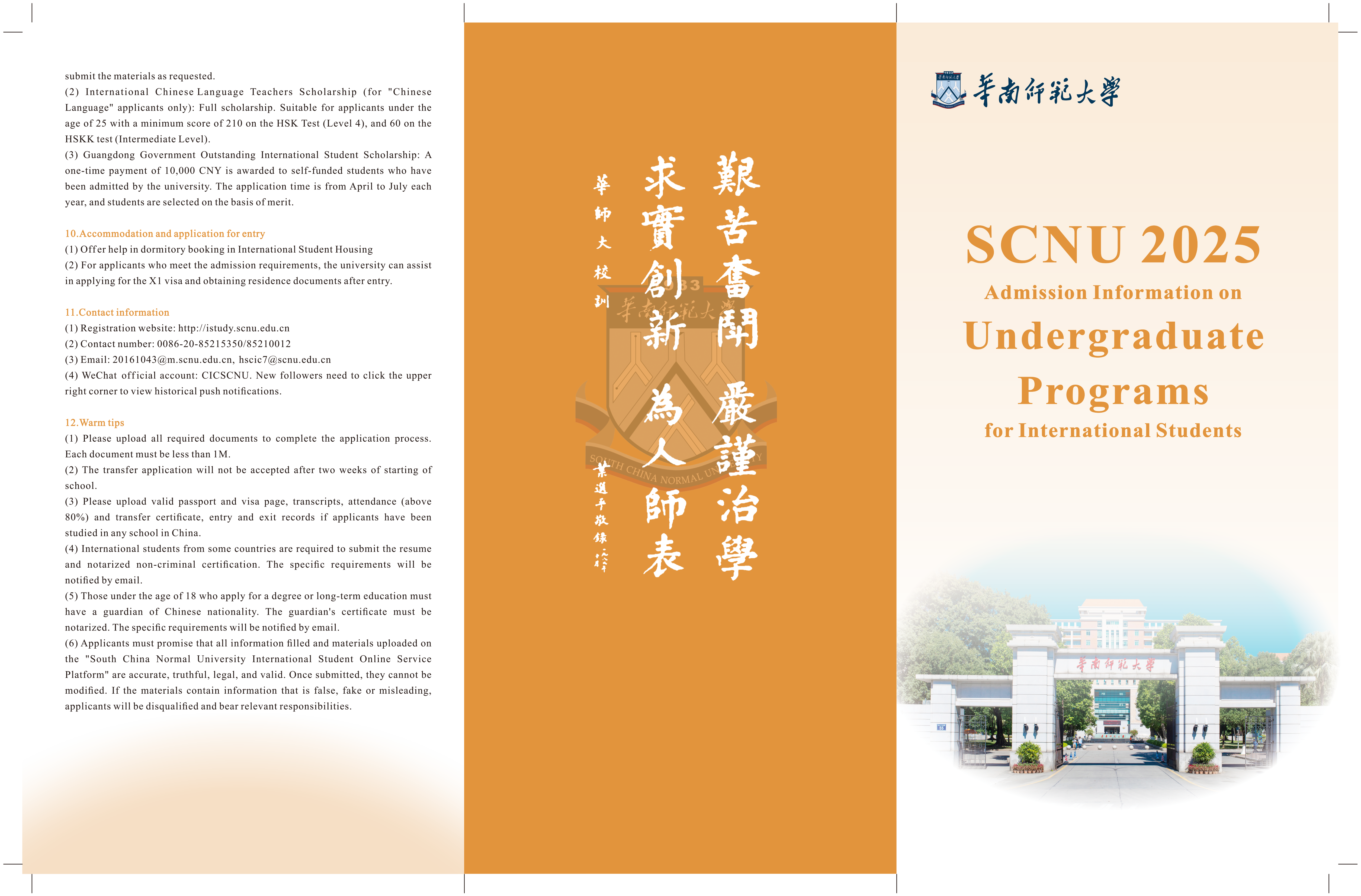 (六)申请人须承诺,在“华南师范大学国际学生在线服务平台”上填写的信息及上传的材料均真实、合法、有效、准确。系统上已提交的申请信息将无法进行修改,若材料中包括错误、虚假、误导性信息,申请资格将被取消,且本人将承担有关责任。