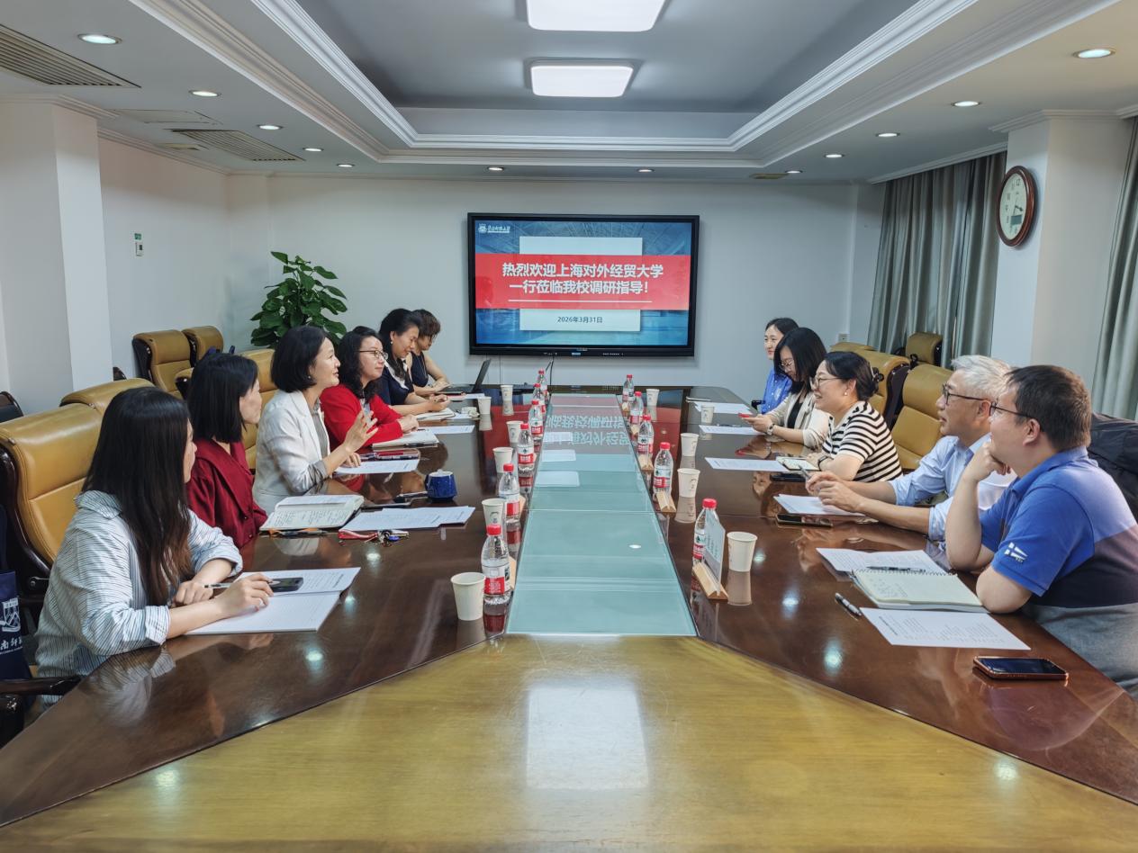 3月31日下午,上海对外经贸大学外事处处长金泉、副处长张水辉等一行来我校石牌校园调研交流。我校国际交流合作处处长谭伟红,副处长沈丽玲、赵頔、李会茹及合作交流科、国际教育科相关工作人员参加座谈交流。